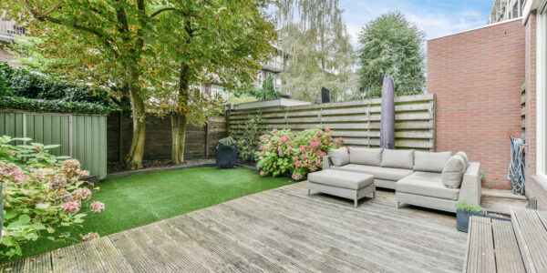 This bright double ground floor apartment (approx. 148 m²) with parquet floor, 3 bedrooms, modern bathroom, luxurious open kitchen and a beautifully landscaped garden of approx. 76 m 2 is located in the popular Bos en Lommer district, near Westerpak and De Baarsjes. all day sun.