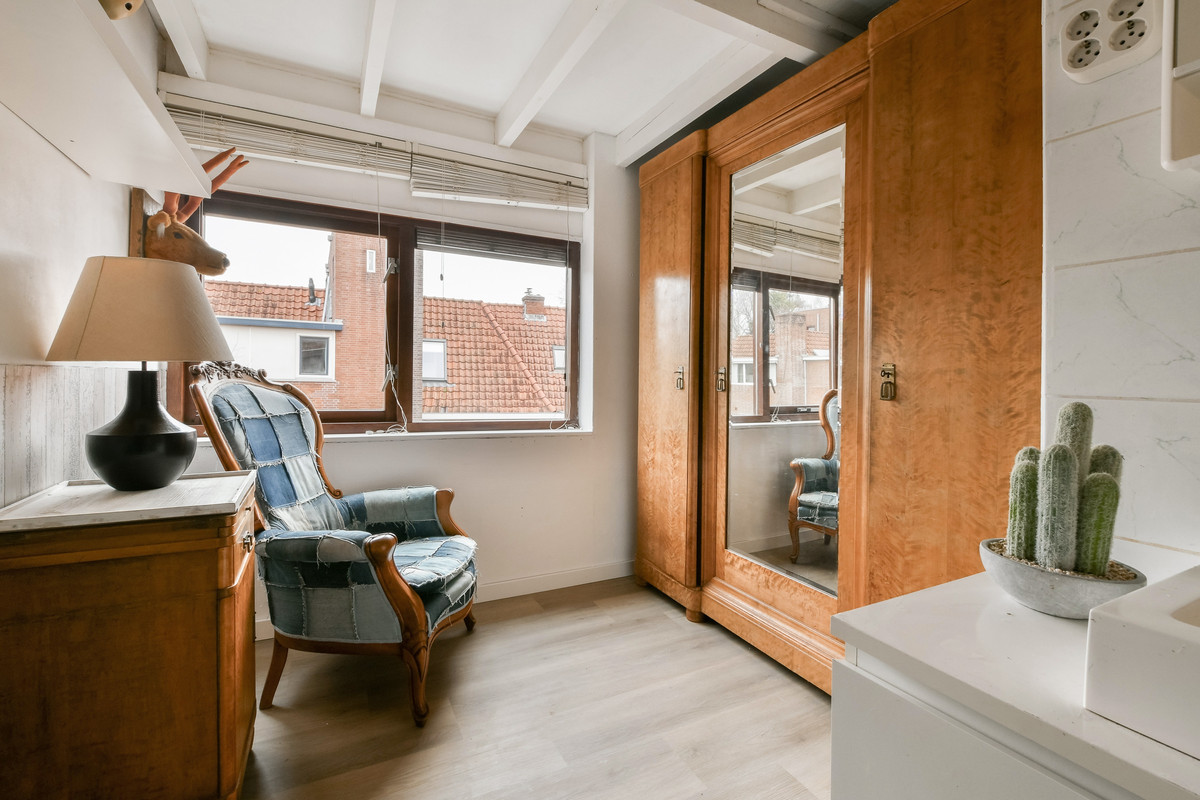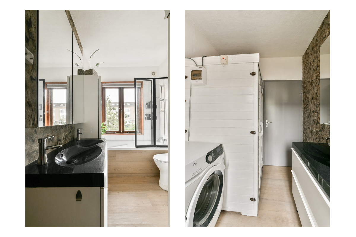 Op de eerste verdieping vindt u drie slaapkamers, elk met hun eigen karakter. De hoofdslaapkamer aan de achterzijde beschikt over openslaande deur naar het dakterras, terwijl de andere slaapkamers ideaal zijn als werk-, slaap- of studeerkamers. De badkamer is voorzien van een bubbelbad en een infraroodsauna, wat zorgt voor ultieme ontspanning. De vloer boven is onlangs vernieuwd met PVC laminaat.