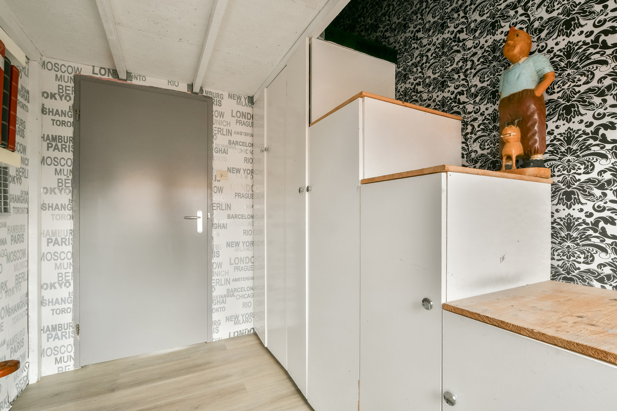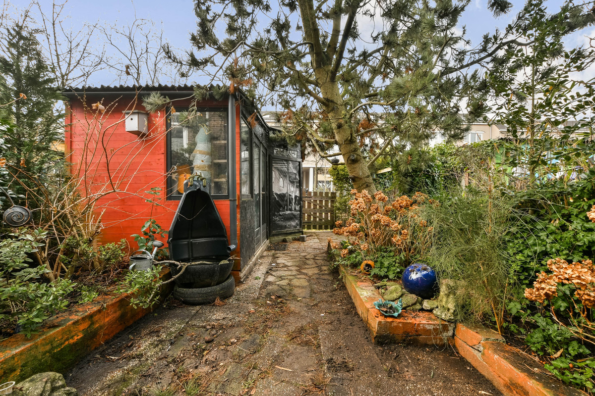De diep gelegen achtertuin op het zuiden nodigt uit tot genieten. Met de hele dag zon en een ruime schuur, is dit een perfecte plek voor ontspanning of het houden van een gezellige barbecue . Het dakterras biedt een extra buitenruimte, ideaal voor een ochtendkoffie of een avondje sterrenkijken.
