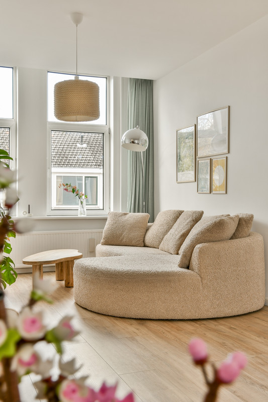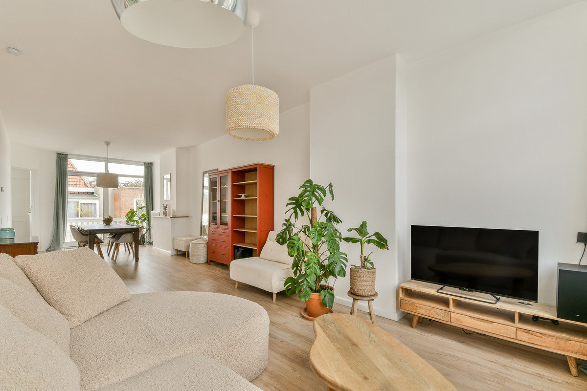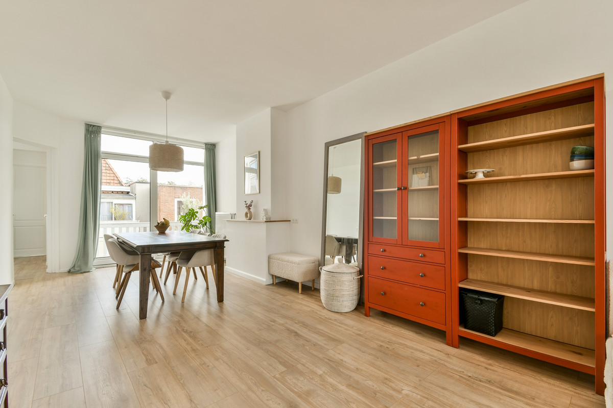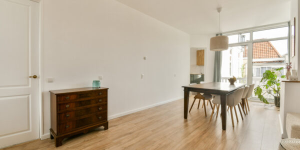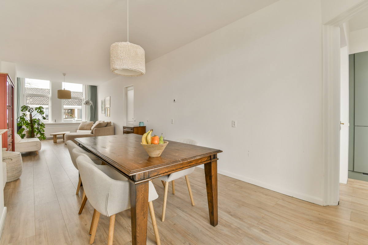 De woonkamer is licht en ruim, voorzien van een moderne laminaatvloer, grote raampartijen met draai-/kiepramen en een schuifpui naar het balkon. De vele ramen zorgen voor een fijne lichtinval en een ruimtelijk gevoel. Het balkon, gelegen op het oosten, is een heerlijke plek voor een kop koffie in de ochtendzon.