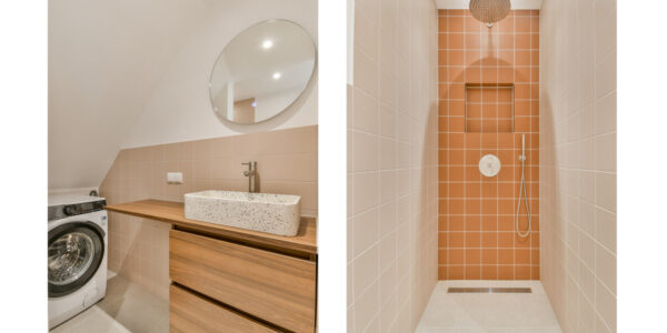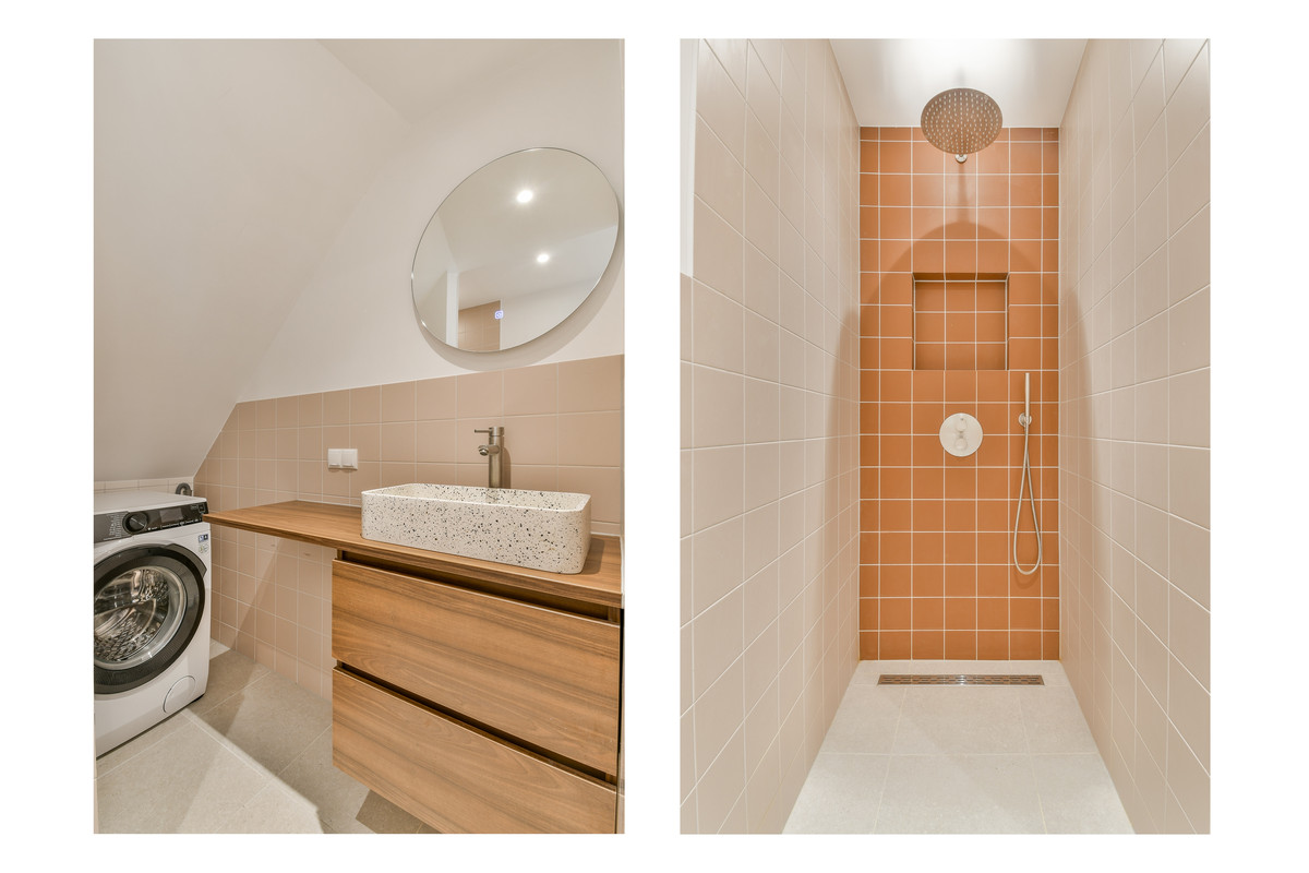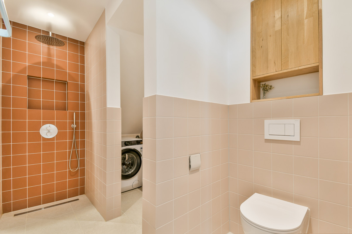 De badkamer is geheel vernieuwd en voorzien van een inloopdouche, hangend toilet, wastafelmeubel, mechanische ventilatie en spots in het plafond. De wasmachine (2024) blijft achter, waardoor de ruimte direct gebruiksklaar is.