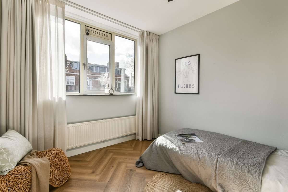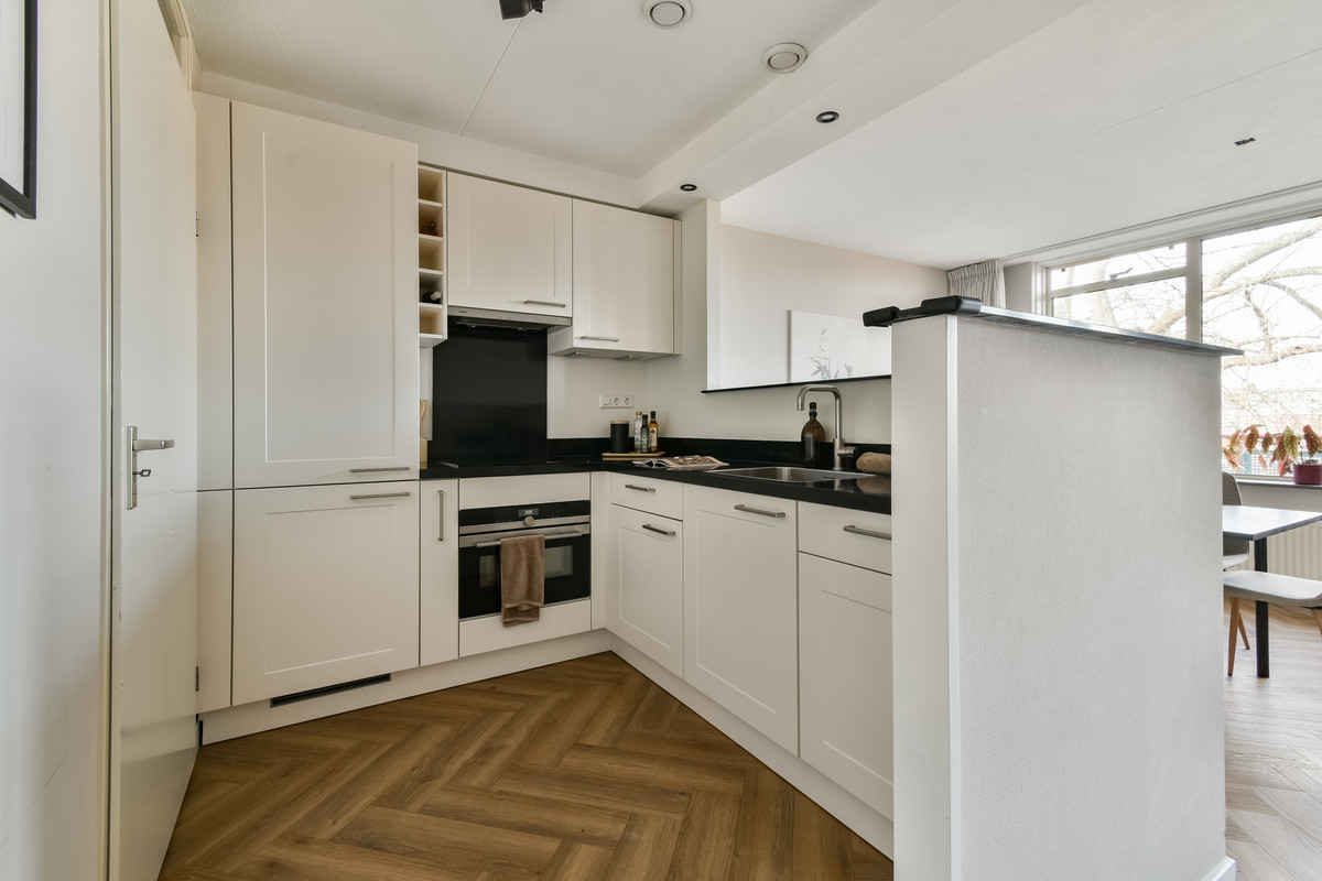 In de populaire en groene Burgemeesterswijk ligt, op de 2e verdieping, dit prachtige appartement met twee slaapkamers, een moderne keuken en badkamer, een zonnig balkon op het noordwesten, een eigen berging en toegang tot een fraai aangelegde gezamenlijke achtertuin. Het gehele appartement is voorzien van een fraaie pvc visgraatvloer, wat zorgt voor een warme en stijlvolle uitstraling.
