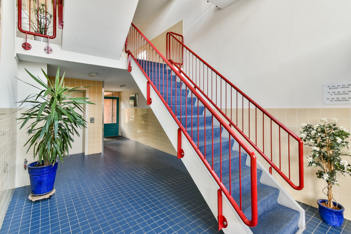Verzorgde gezamenlijke entree met brievenbussen, bellentableau en intercominstallatie. Vanuit de centrale hal zijn zowel het trappenhuis als de lift bereikbaar.