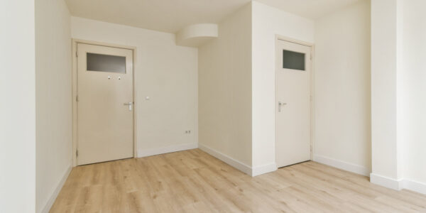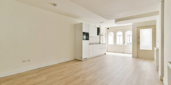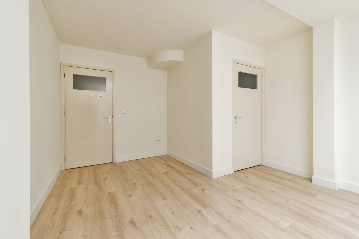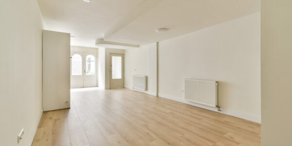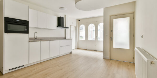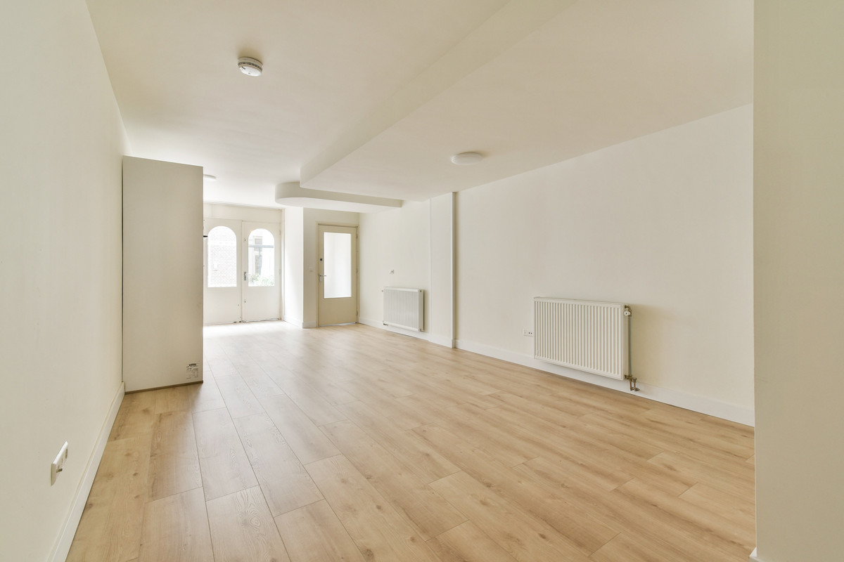 Aan de voorzijde bevindt zich de sfeervolle woonkamer met de meterkast (7 groepen + aardlekschakelaar). De ruimte biedt genoeg plek voor een comfortabele zithoek en eettafel.