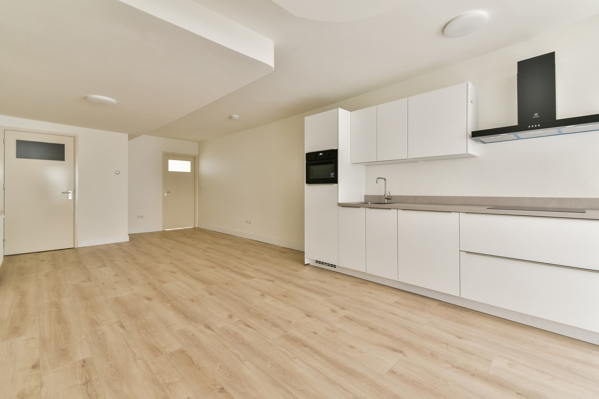 De open keuken sluit hier mooi op aan en is voorzien van diverse inbouwapparatuur: een koelkast, vaatwasser, inductiekookplaat en afzuigkap. Een fijne plek waar koken en gezelligheid samenkomen.