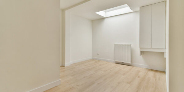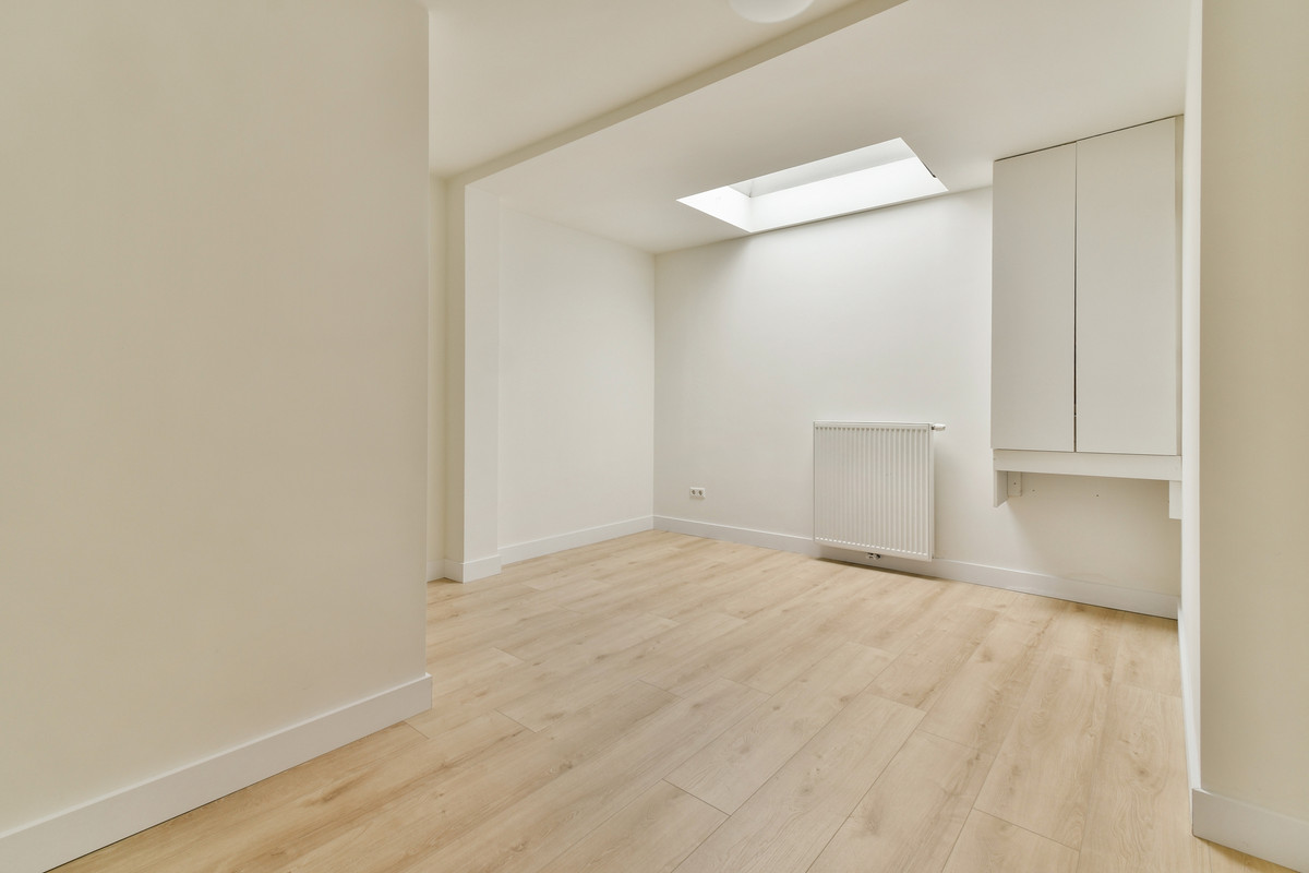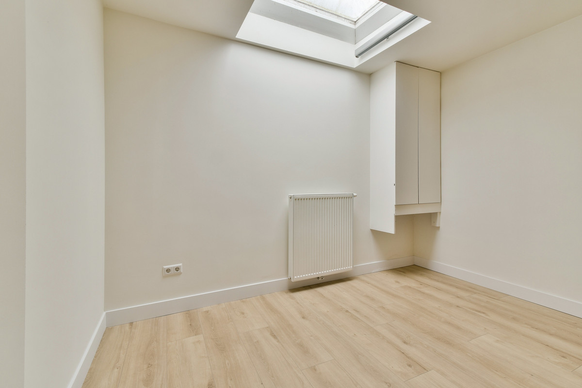 De slaapkamer aan de achterzijde biedt veel rust en privacy. Hier vind je tevens een kast met de combiketel (Remeha Avanta, 2016). Dankzij het elektrisch bedienbare dakraam valt er prettig daglicht binnen, wat de kamer extra ruimtelijk maakt.