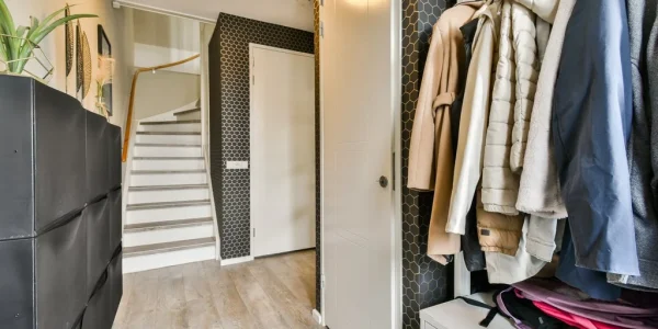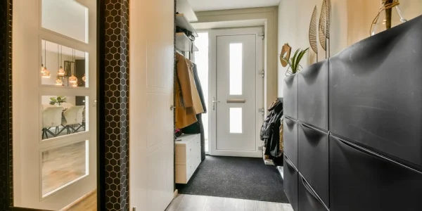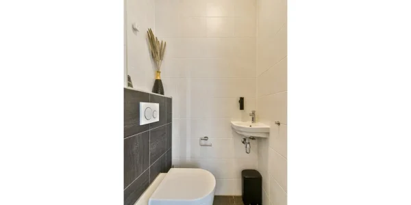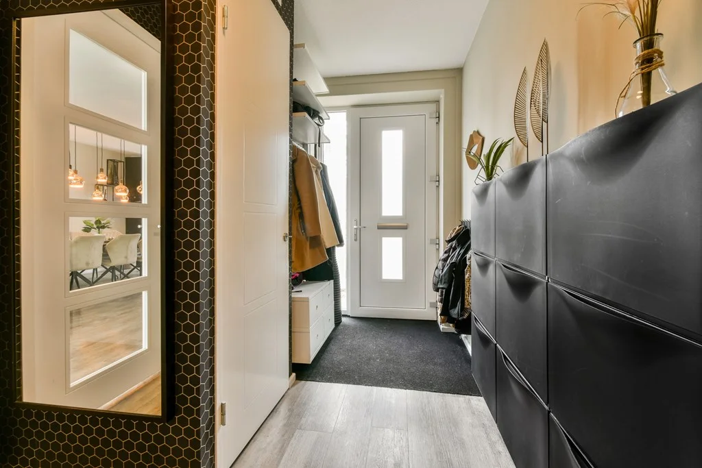 Bij binnenkomst valt direct de ruime hal op met garderobekast, meterkast (11 groepen), modern hangend toilet met fontein en de trapopgang naar de eerste verdieping.