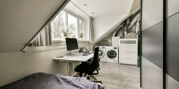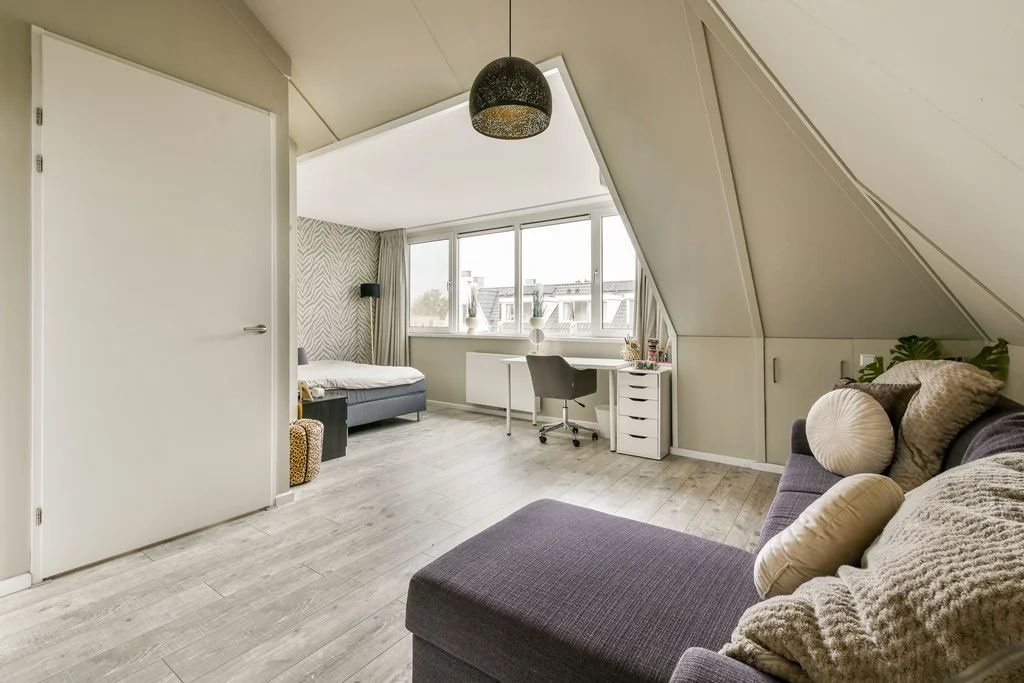 De tweede verdieping verrast met nog twee grote slaapkamers, beide voorzien van dakkapellen en bergruimte achter de knieschotten. Ook hier ligt een mooie laminaatvloer die het geheel een rustige, harmonieuze uitstraling geeft. De slaapkamer aan de achterzijde beschikt over airconditioning, terwijl de kamer aan de voorzijde is ingericht met aansluitingen voor de wasmachine en droger. Hier bevinden zich tevens de Intergas-combiketel (2017) en het warmteterugwinsysteem.