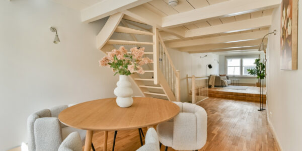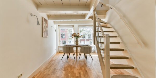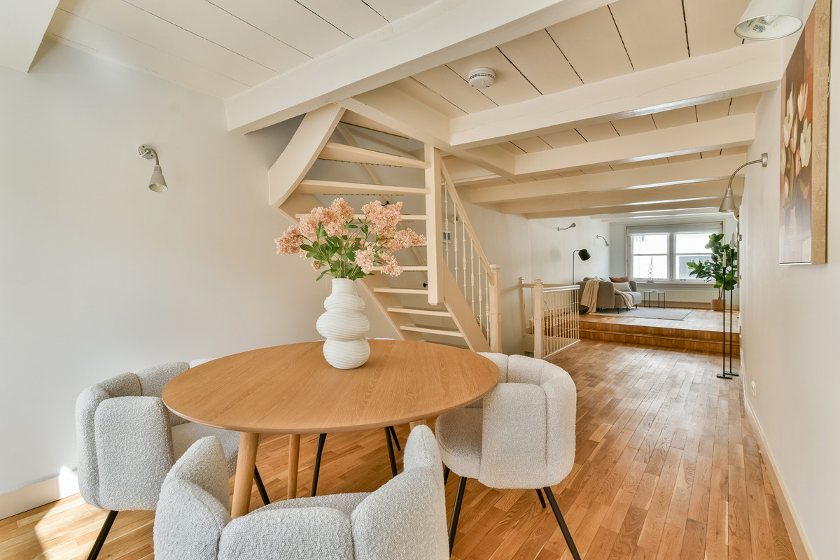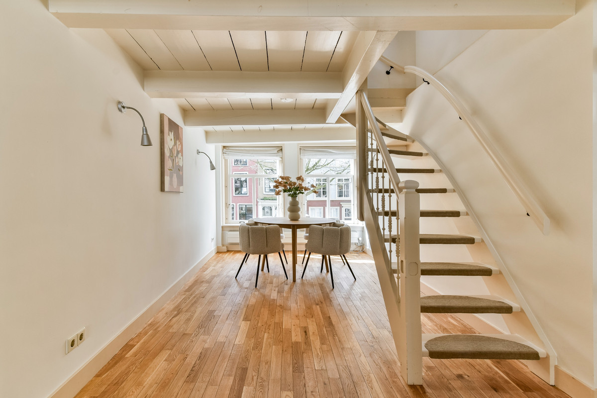 Het achterhuis beschikt over een woonkamer met trap naar de eerste verdieping en een praktische trapkast.