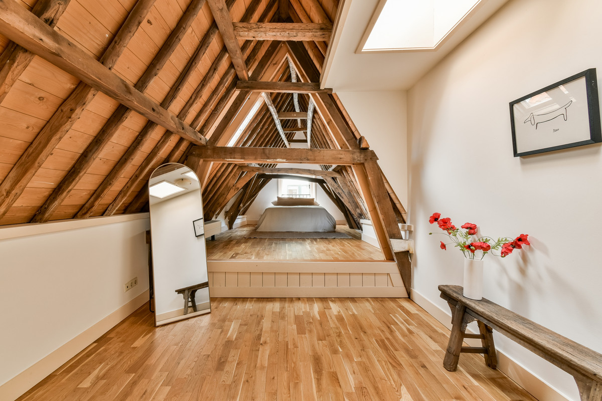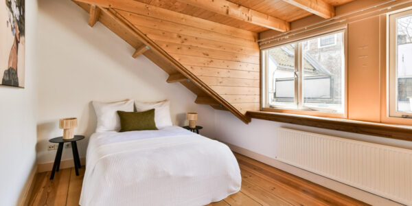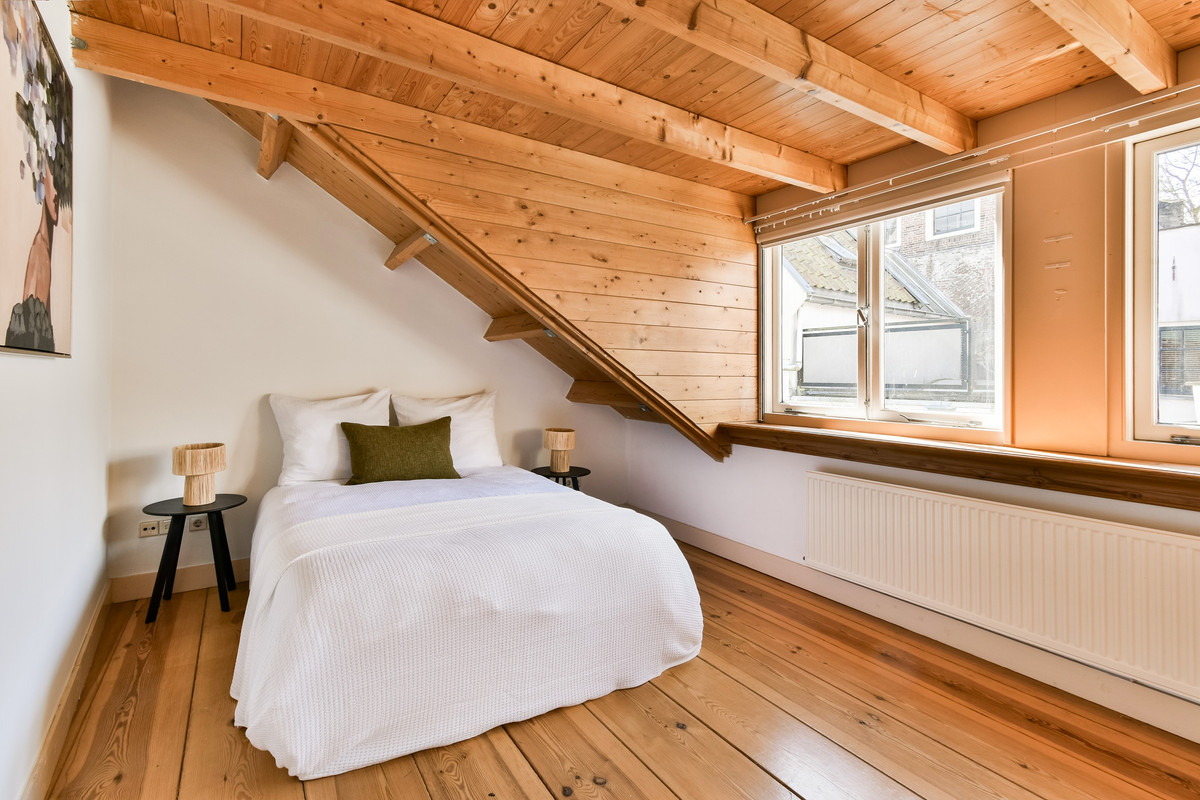 Daarnaast ligt een sfeervolle, romantische slaapkamer met twee dakramen waar het daglicht prachtig naar binnen valt.