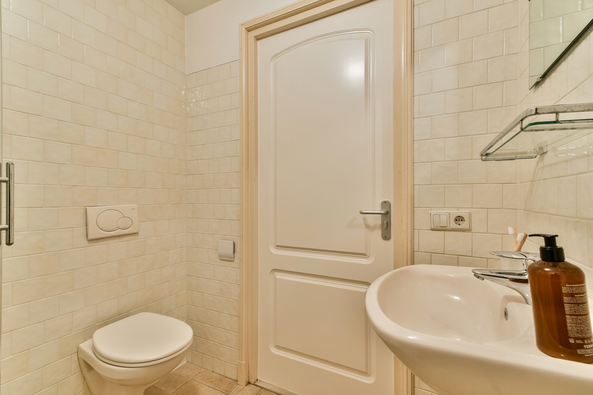 Via een tussenhal bereikt u een tweede badkamer met douchecabine, hangend toilet, wastafel, wasmachineaansluiting en mechanische ventilatie. Vanuit hier is er tevens een deur naar de stadstuin, waardoor binnen en buiten op natuurlijke wijze in elkaar overlopen.