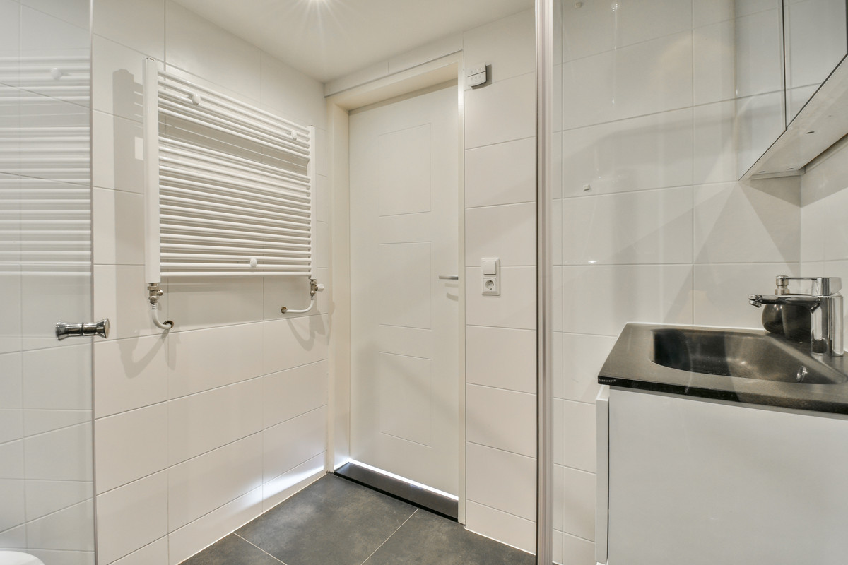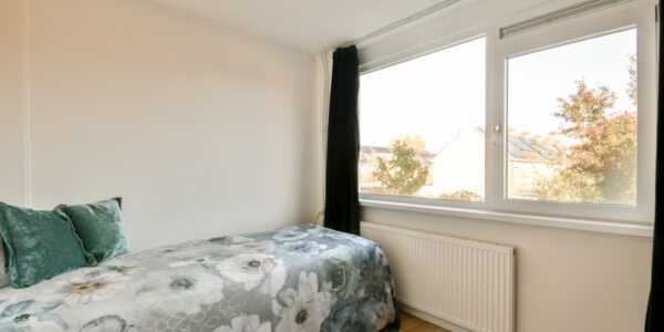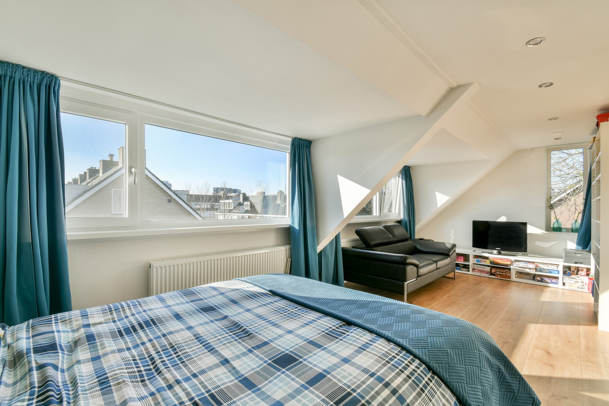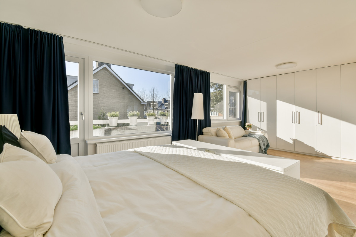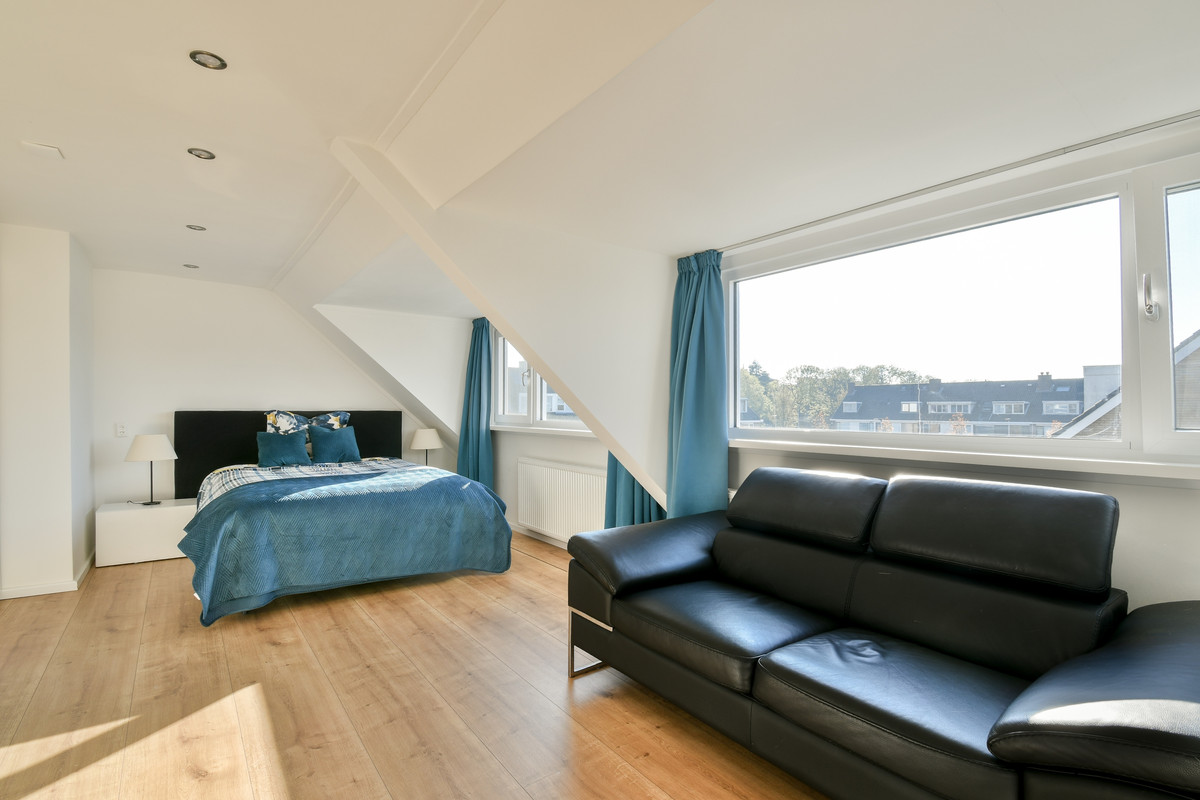 De overloop biedt toegang tot drie slaapkamers. De royale hoofdslaapkamer aan de achterzijde (voorheen twee kamers) beschikt over veel vaste kastruimte en openslaande deuren naar het balkon op het zuidwesten. Aan de voorzijde bevinden zich nog twee goed bemeten slaapkamers, ideaal als kinderkamer, werkplek of logeerkamer. De moderne badkamer is stijlvol afgewerkt met een inloopdouche, hangend toilet, wastafelmeubel en handdoekradiator.
