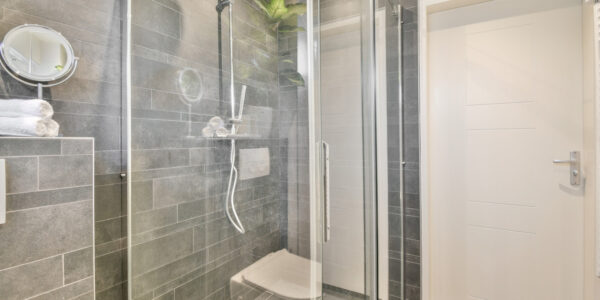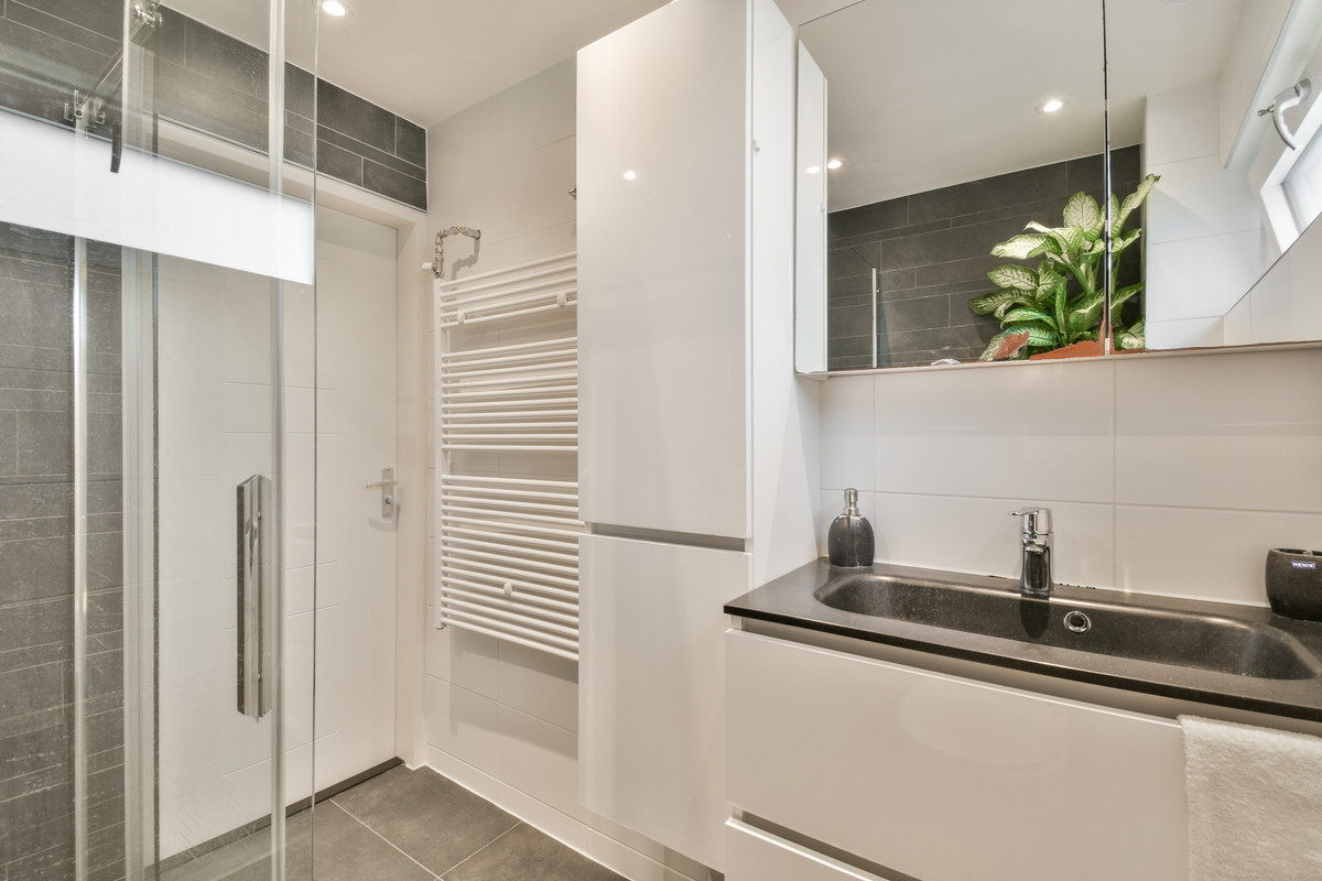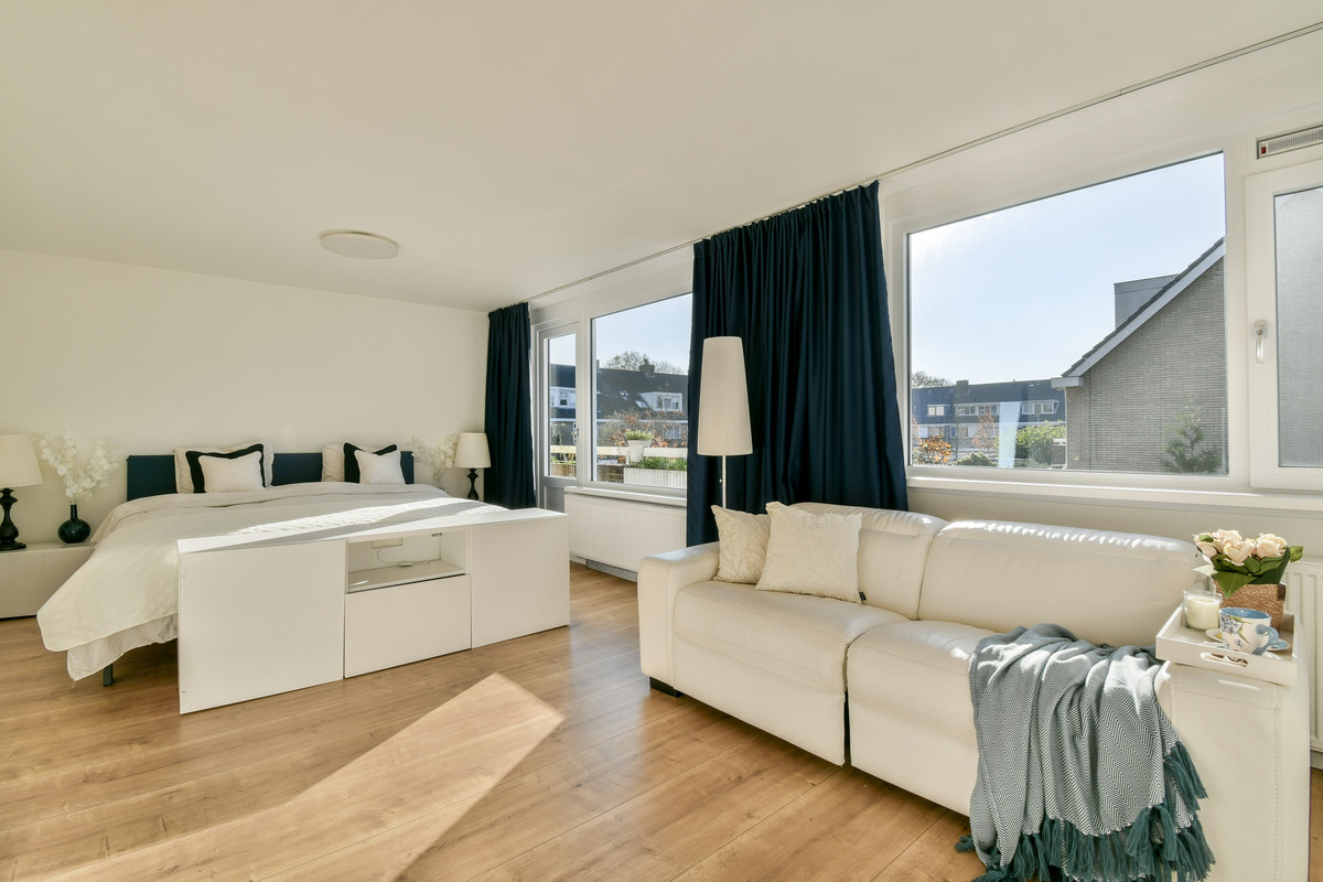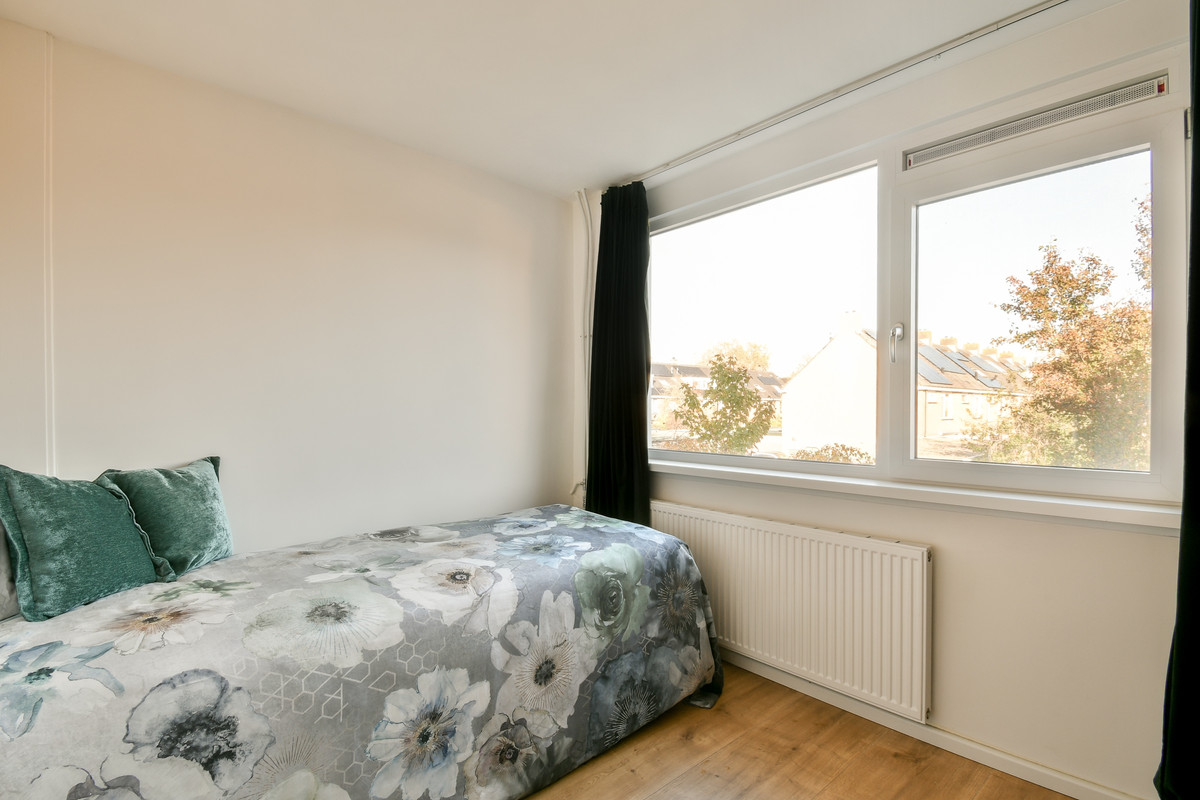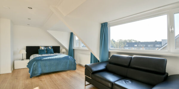De overloop biedt toegang tot drie slaapkamers. De royale hoofdslaapkamer aan de achterzijde (voorheen twee kamers) beschikt over veel vaste kastruimte en openslaande deuren naar het balkon op het zuidwesten. Aan de voorzijde bevinden zich nog twee goed bemeten slaapkamers, ideaal als kinderkamer, werkplek of logeerkamer. De moderne badkamer is stijlvol afgewerkt met een inloopdouche, hangend toilet, wastafelmeubel en handdoekradiator.