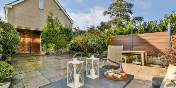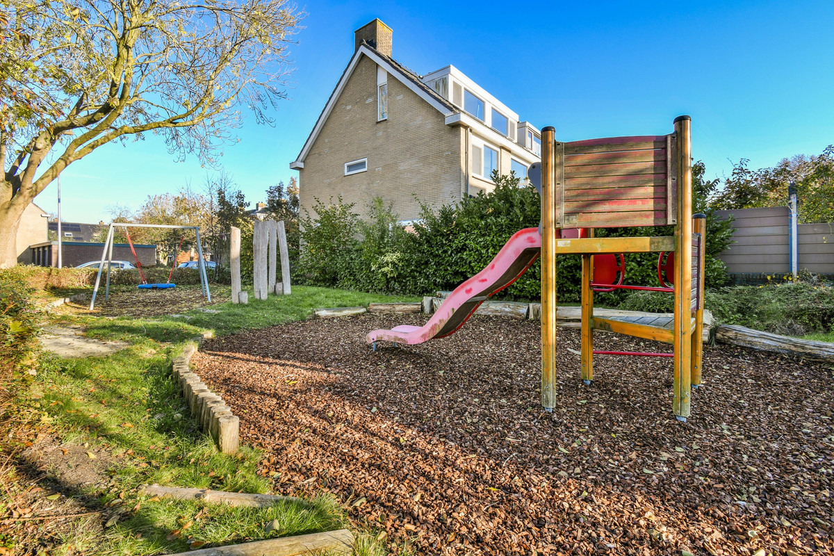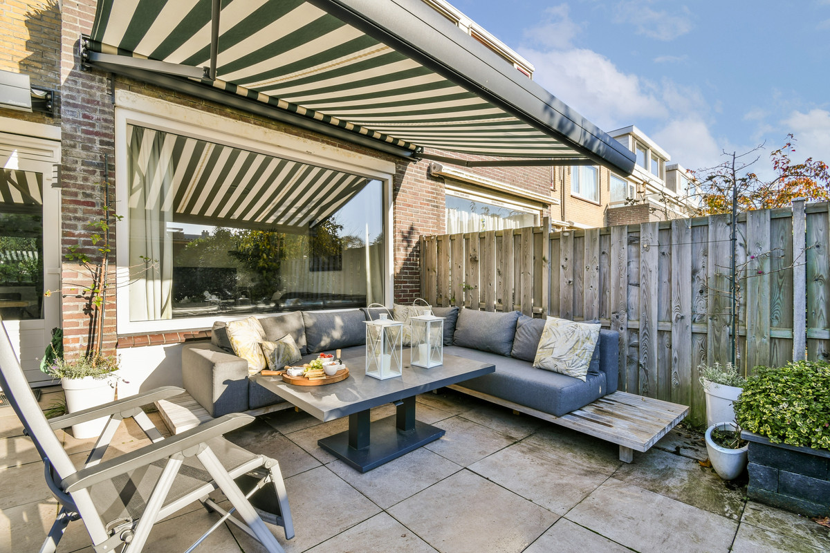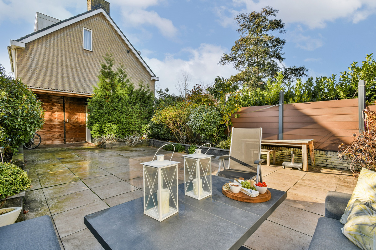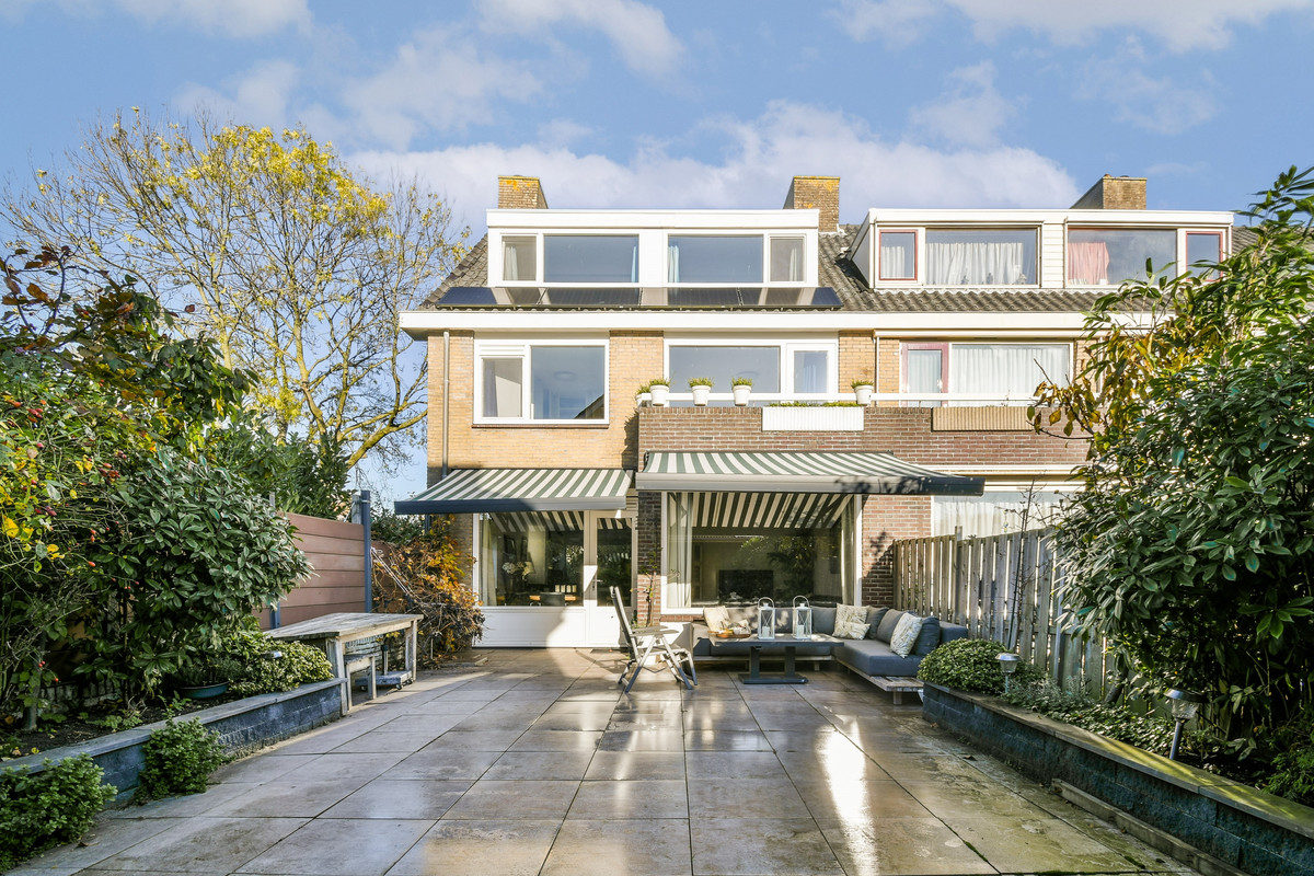 Via de woonkamer stap je zo de zonnige achtertuin in, gelegen op het zuidwesten – een heerlijke plek om van de middag- en avondzon te genieten. De tuin is verzorgd aangelegd en beschikt over een stenen berging met elektra, een achterom en een overkapping. Aan de achterzijde van de woning zijn twee elektrische zonneschermen geplaatst, dat zorgt voor aangename schaduw en verkoeling op zonnige dagen.