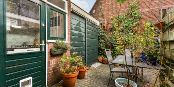 De achtertuin ligt op het oosten, waardoor je hier heerlijk kunt genieten van de ochtendzon en vroege middagzon. De tuin is ingericht met een stenen berging, een achterom en een recht van overpad naar de achterpoort. Het is een fijne, onderhoudsvriendelijke buitenruimte die geschikt is voor ontbijten in de zon, spelen met de kinderen of ontspannen na een drukke dag.