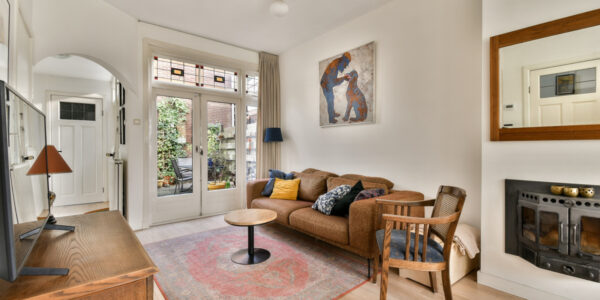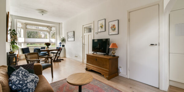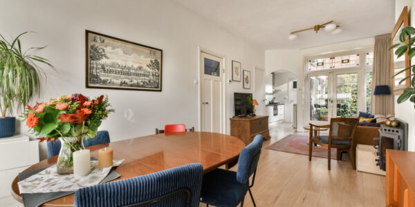 Bij binnenkomst voel je het meteen: dit is geen standaard woning. De prachtige granito vloer in de hal, de klassieke trapopgang en de originele details verwijzen naar de rijke jaren ’30-architectuur. Vanuit de hal bereik je de woonkamer, waar sfeer en comfort hand in hand gaan.