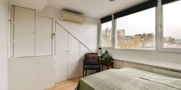 Beide kamers beschikken over airconditioning, waardoor het hier het hele jaar door comfortabel is. In de slaapkamer aan de achterzijde bevindt zich de opstelplaats voor de Remeha-combiketel (2020).