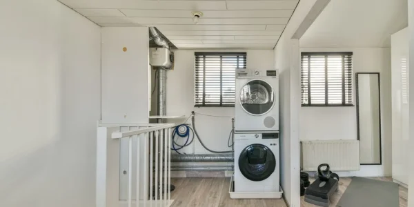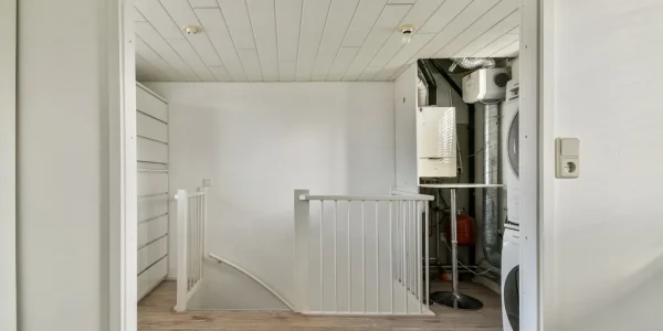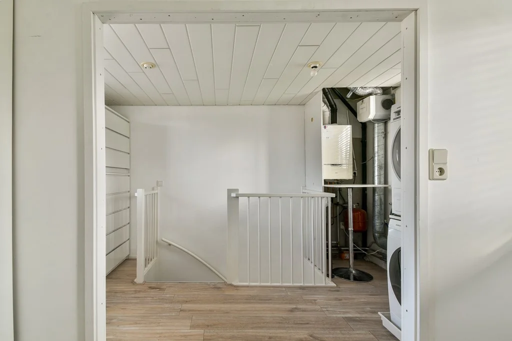 Overloop met cv (2019) en mechanische ventilatie opstelling; 5de slaapkamer.