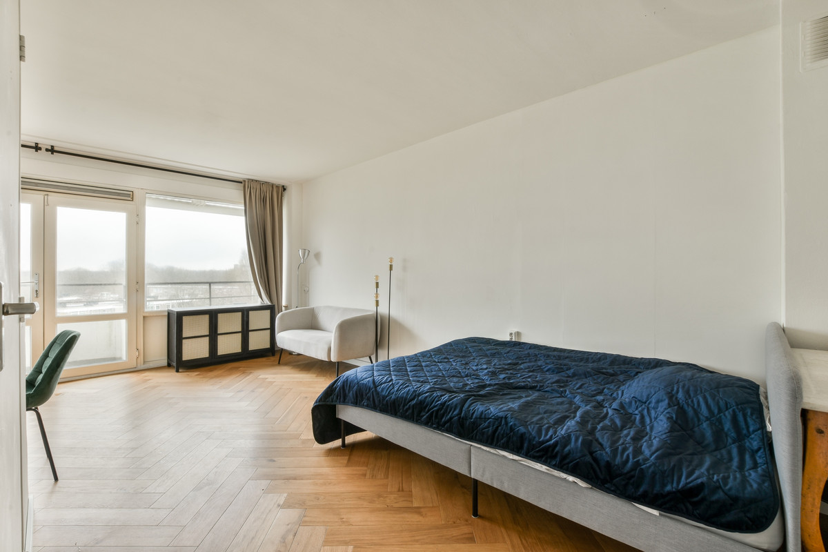 In the heart of the green Mariahoeve district, this bright studio apartment is located in a well-maintained apartment complex (Gravenhof II) with lifts on the 6th floor with a balcony for the morning and afternoon sun and private (bicycle) storage in the basement.