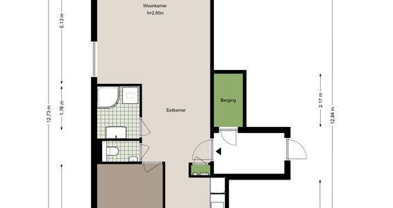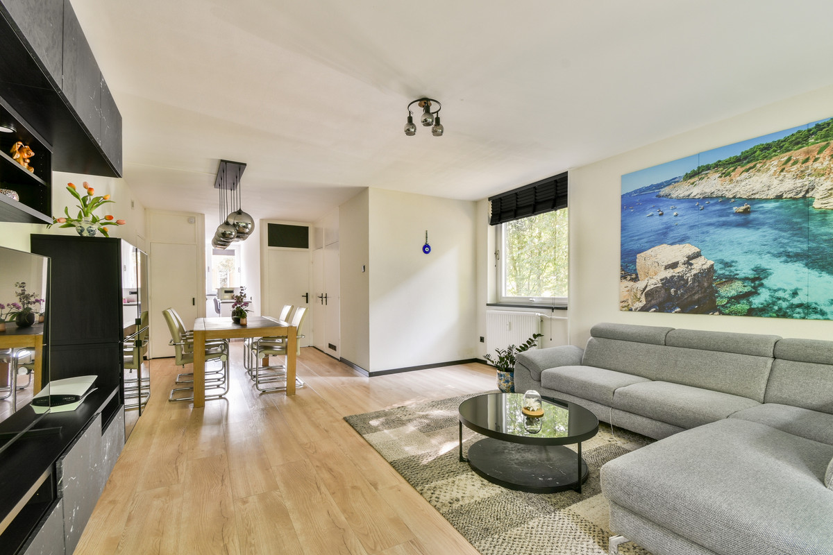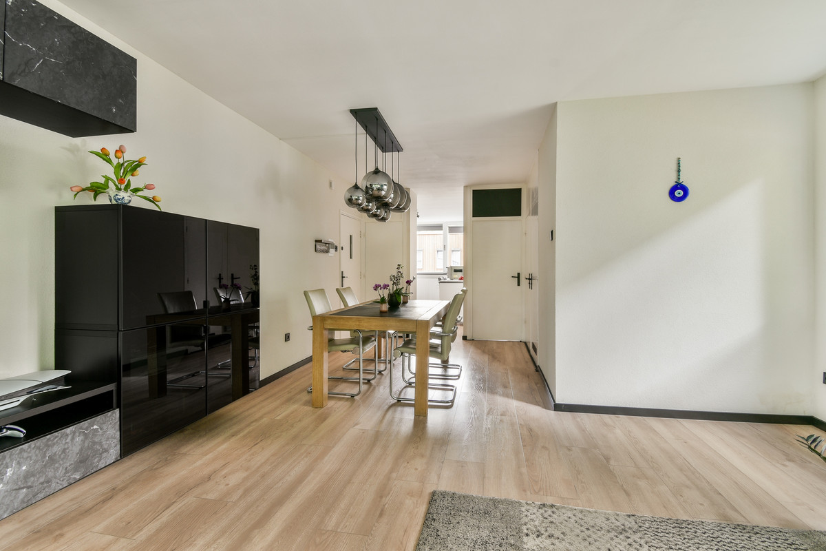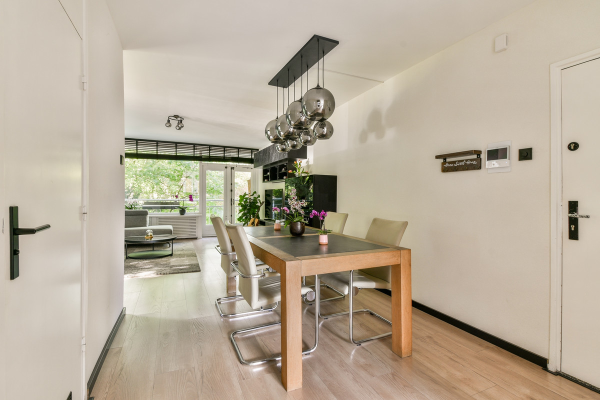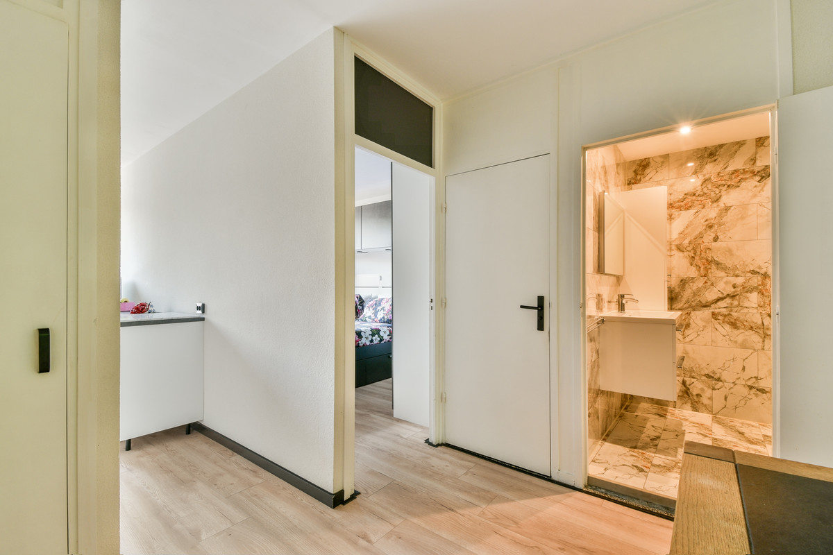 Bij binnenkomst treft u de ontvangsthal met aan de rechterkant de berging. Als u via de kamerdeur de eetkamer binnenkomt, ziet u de open verbinding naar zowel de woonkamer als keuken met aan de linkerkant nog de meterkast. De lichtinval vanuit de grote ramen in de woning verlicht met gemak deze gehele open ruimte wat zorgt voor een aangename sfeer. Tegenover de entreedeur naar de eetkamer bevinden zich de moderne badkamer en het toilet, alsmede de toegang naar het slaapvertrek. Aangelegen aan de achterkant van het appartement bevindt zich een ruim balkon met veel zon en een zeer fraai uitzicht.