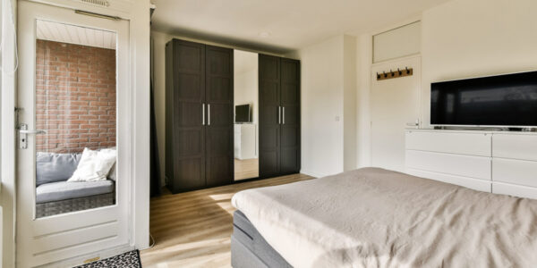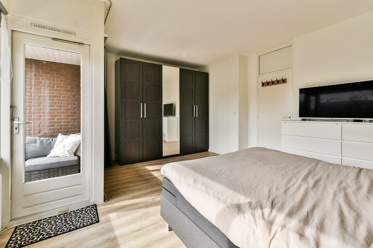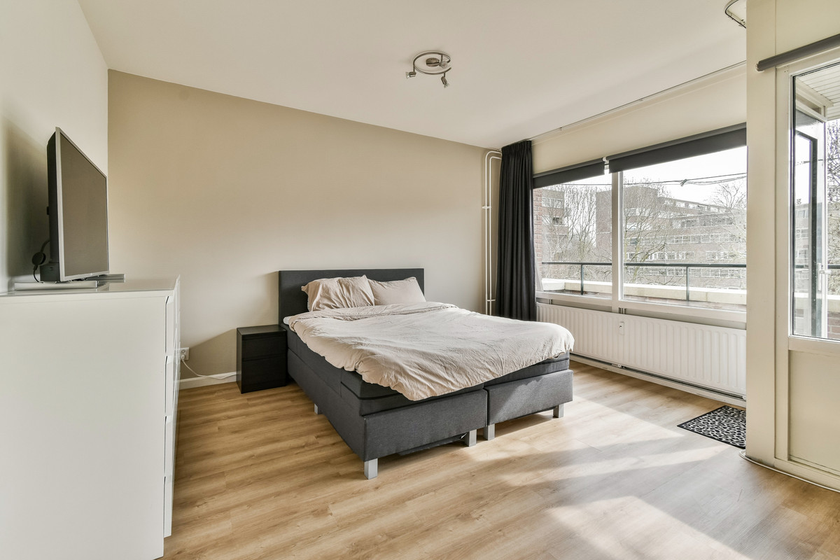 Slaapkamer 3: Zeer ruime master bedroom en geeft toegang tot het zonnige balkon (Zuidoost) voorzien van vlonderdelen. Deze kamer is voorzien van een (extra) bekabelde internetverbinding.