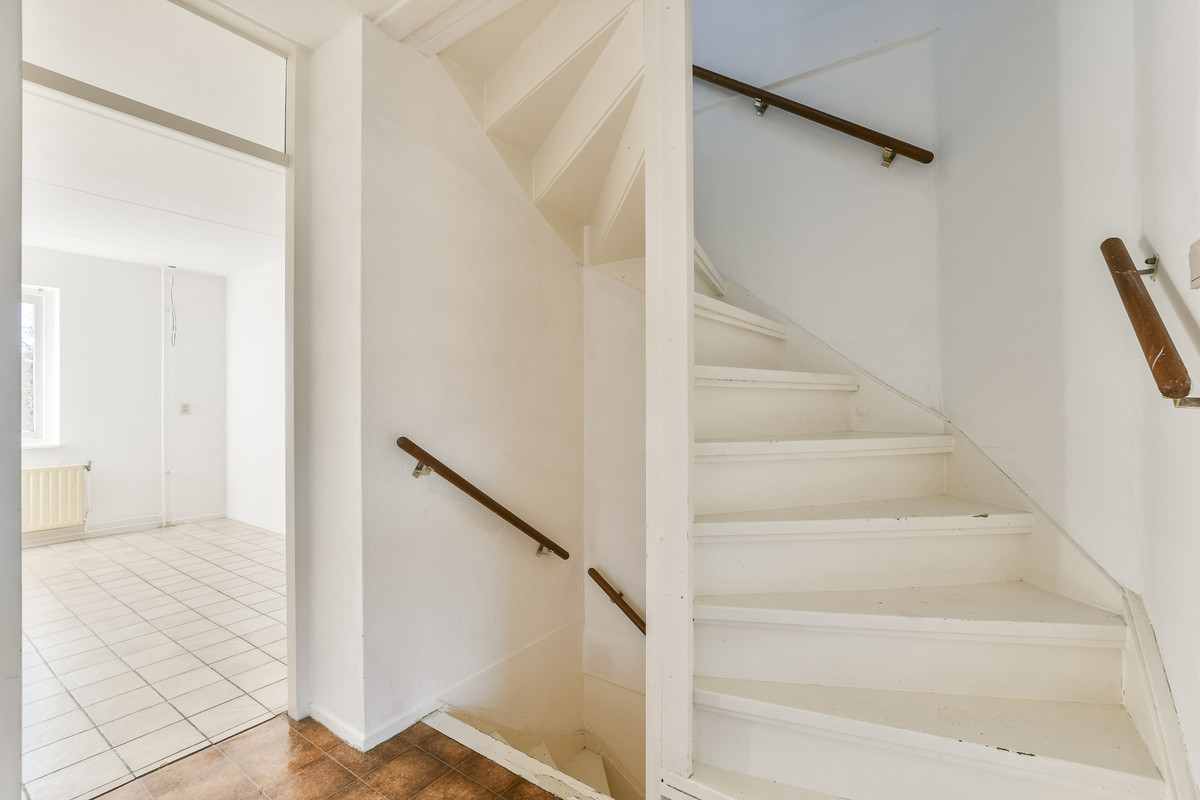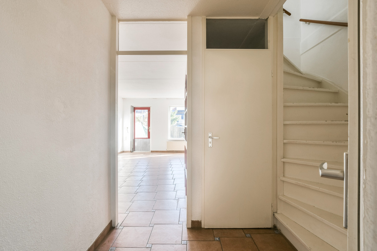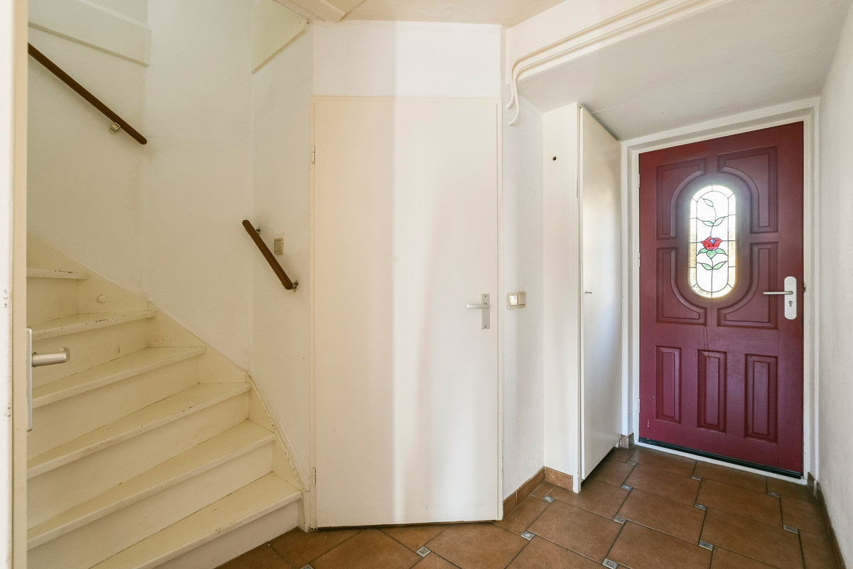 Die handige trapkast biedt genoeg ruimte voor schoenen, speelgoed en alles wat uit het zicht mag. En wil je meteen naar buiten? Hop, via de schuifpui sta je in je eigen tuin