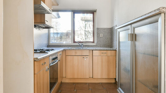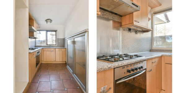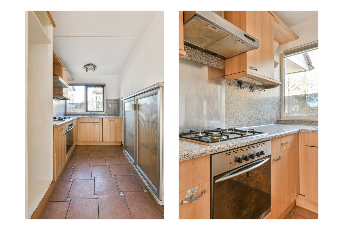 De woonkamer is zo’n plek waar je direct wilt neerploffen. De grote ramen zorgen voor volop daglicht en een mooi uitzicht op je groene achtertuin. Dankzij de perfecte maatvoering richt je de ruimte helemaal in naar jouw smaak. De hoekkeuken bevind zich aan de voorzijde van het huis.
