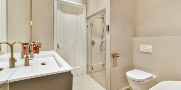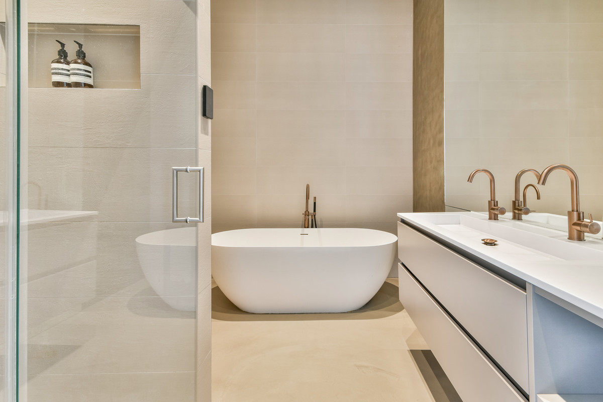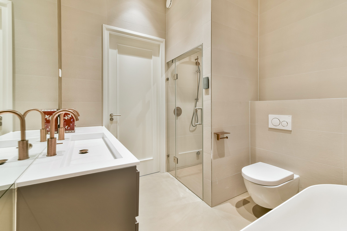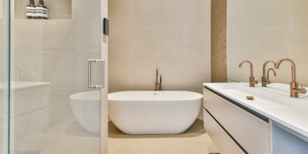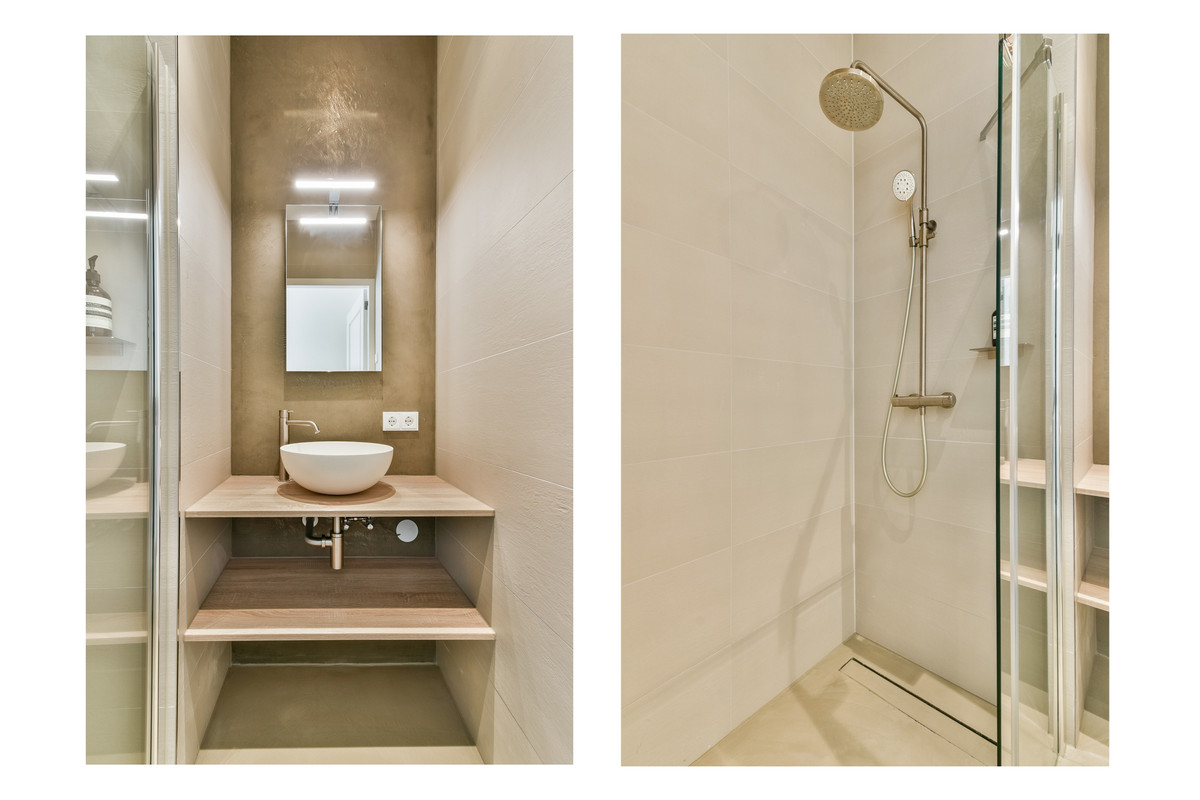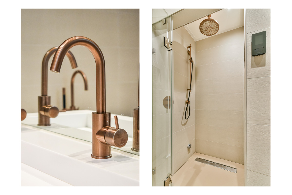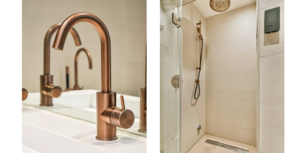 Het appartement beschikt over twee badkamers. De eerste badkamer is voorzien van een inloopdouche, een wastafelmeubel en luxe Hotbath kranen. De tweede badkamer is en-suite gelegen bij de derde slaapkamer en is bijzonder compleet uitgevoerd met een inloopdouche met stoomfunctie, een ligbad, een hangend toilet en een dubbel wastafelmeubel.