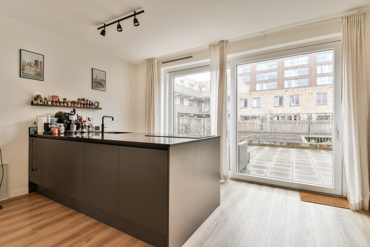 Hier bevindt zich de lichte en royale woonverdieping. De open keuken met kookeiland is voorzien van diverse inbouwapparatuur en vormt het hart van de woning. Via de schuifpui heb je direct toegang tot het zonnige terras – perfect voor een kop koffie in de ochtend of een borrel in de avond.