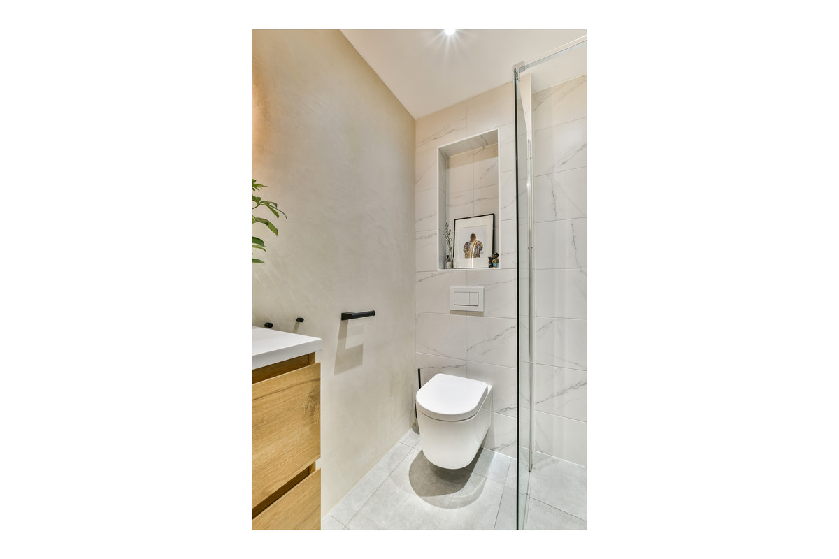 Het appartement verrast met een royale, luxe badkamer voorzien van regendouche en