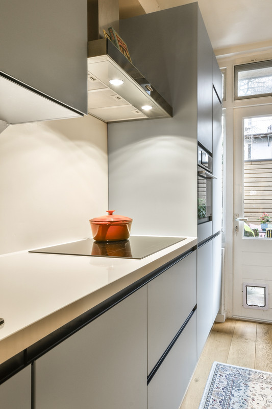 verwarmde spiegel. De moderne, greep loze keuken is een verademing met