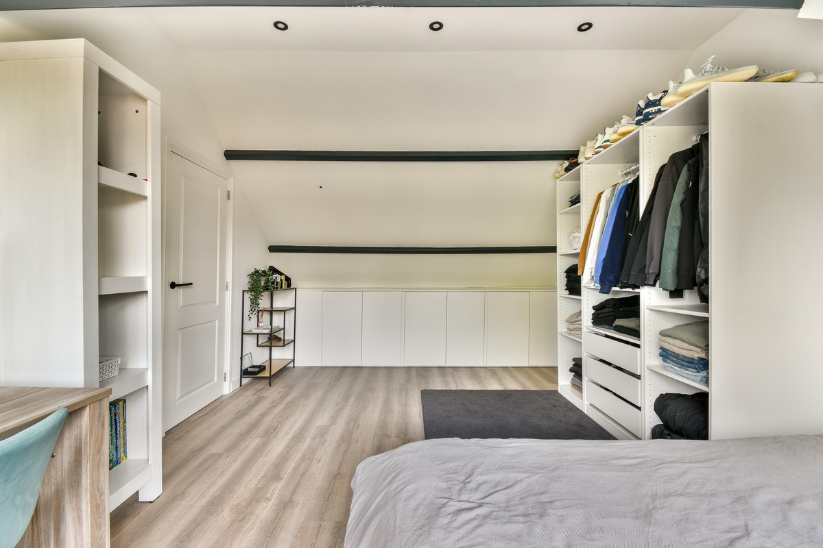 On the first floor, there are three spacious bedrooms. The master bedroom is located at the front of the house and is equipped with an electrically operated sunshade. The modern bathroom features a spacious rain shower and double sink. The recently renovated attic has a dormer that spans the entire width at the back of the house. On this floor, you will also find the fourth bedroom (with roller shutter) and a spacious attic that can be used as a work and laundry room. This space is also ideal for use as an additional bedroom.