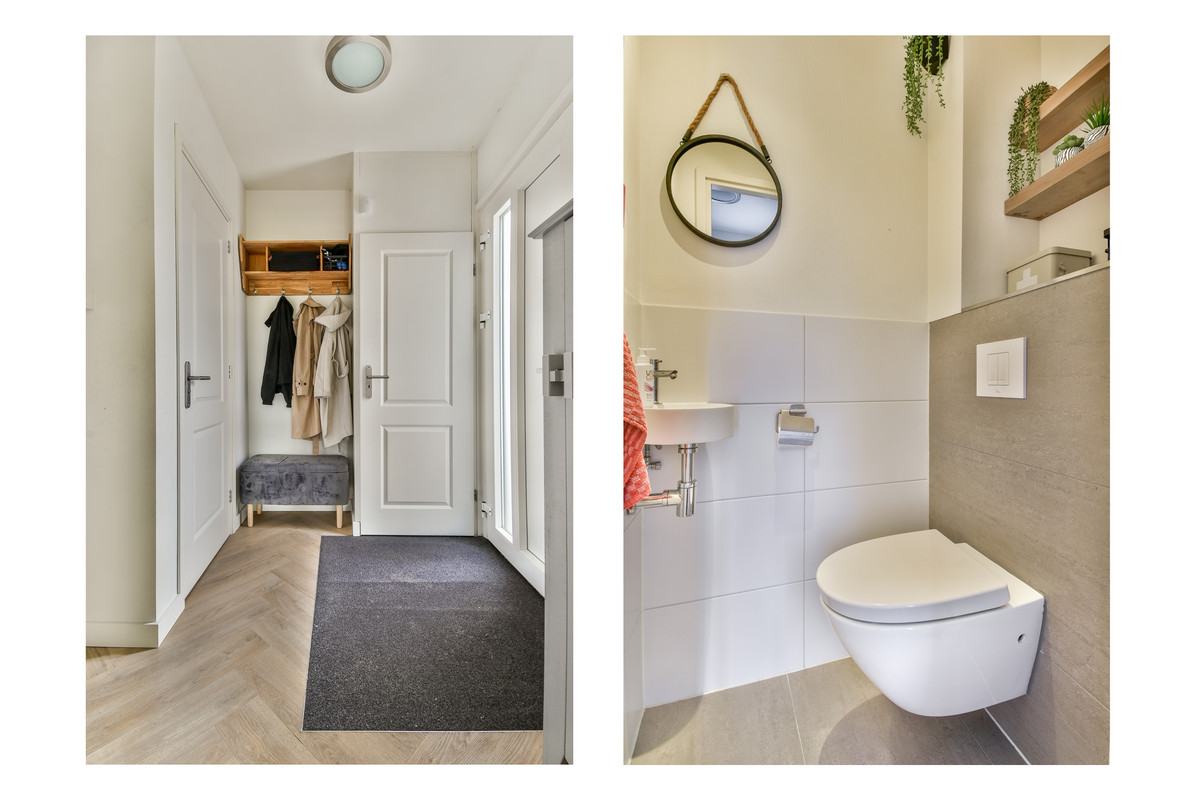Bij binnenkomst in de ruime hal ervaart u direct de nette afwerking en de warme sfeer. De in 2022 uitgebouwde woonkamer, voorzien van een chique PVC visgraatvloer en vloerverwarming, is het hart van de woning. De grote schuifpui en een lichtstraat zorgen voor een overvloed aan natuurlijk licht en een open verbinding met de moderne keuken, compleet met Whirlpool apparatuur en een Quooker kraan.
