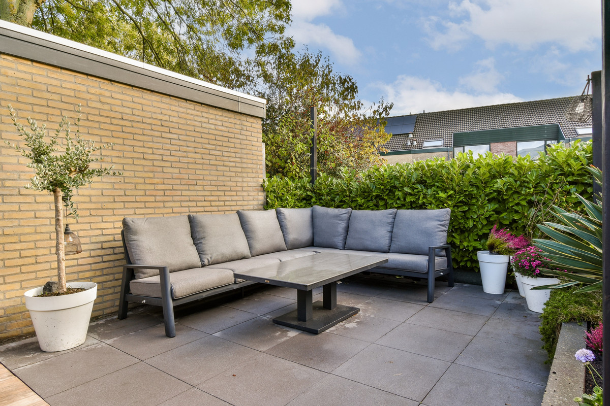 De fraai aangelegde achtertuin op het noord oosten is een oase van rust en privacy. Hier kunt u genieten van lange zomerse avonden, omgeven door groen. De tuin beschikt over een schuur met elektra en een overkapping, ideaal voor extra opslag of als hobbyruimte.