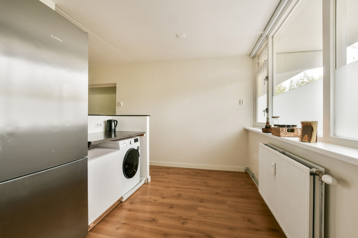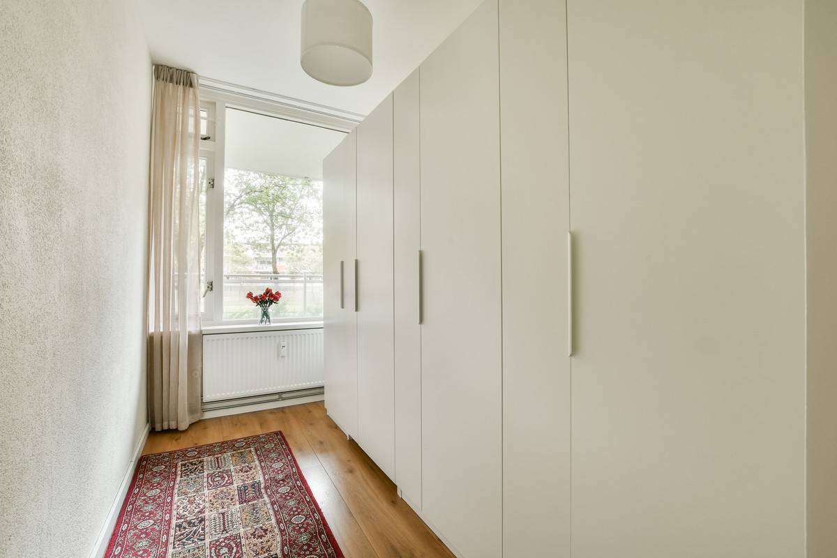 Bij binnenkomst in de ontvangsthal ervaar je direct de lichte en verzorgde sfeer van dit appartement. De royale woonkamer is voorzien van een fraaie laminaatvloer en biedt via een deur toegang tot het balkon op het westen – een heerlijk plekje om te genieten van de middag- en avondzon. Het balkon strekt zich uit over de volledige breedte van het appartement, waardoor je hier volop ruimte hebt om te ontspannen. Aan de voorzijde bevindt zich de keuken, uitgerust met een vaatwasser, keukenblok en aansluiting voor de wasmachine. Daarnaast is er een separaat toilet met hangend closet en fontein, geheel vernieuwd in 2025, evenals de stijlvolle badkamer met inloopdouche, wastafelmeubel, elektrische handdoekradiator en sfeervolle inbouwspots in het plafond. Het appartement beschikt over drie slaapkamers: één aan de voorzijde en twee aan de achterzijde, ideaal als kinderkamer, werkkamer of logeerkamer. In de tussenhal bevindt zich bovendien een handige vaste kast voor extra bergruimte. Een instapklaar appartement met een prettige indeling, moderne afwerking en een heerlijke buitenruimte — een plek waar je je direct thuis voelt.