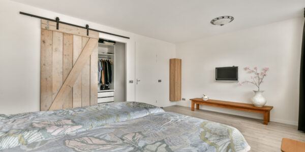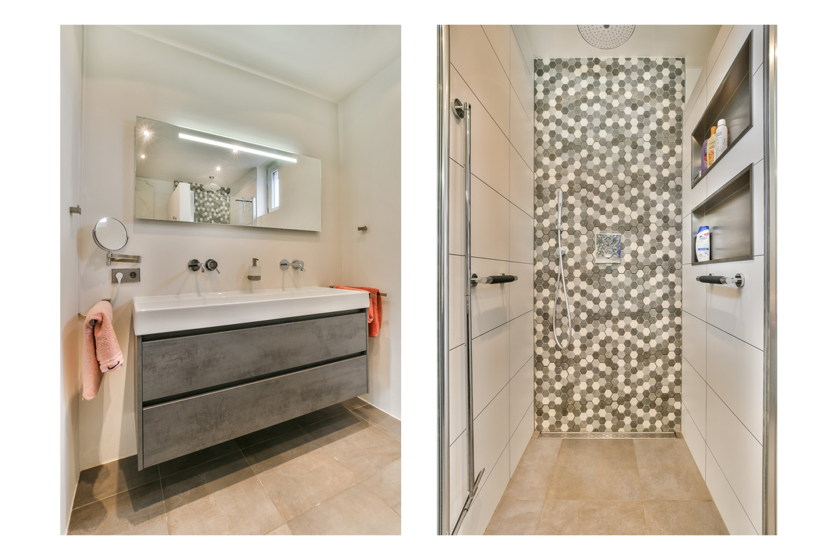 Via de overloop bereikt u twee slaapkamers en de moderne badkamer. De royale slaapkamer aan de achterzijde beschikt over een ruime walk-in closet – een luxe extra! De tweede slaapkamer ligt aan de voorzijde en heeft een charmant Frans balkon. De badkamer is stijlvol afgewerkt en voorzien van een inloopdouche, een dubbel wastafelmeubel, een hangend toilet en inbouwspots voor een moderne uitstraling.