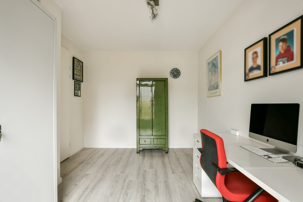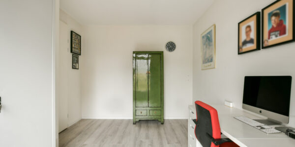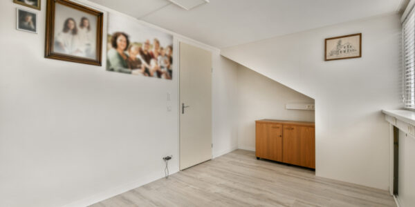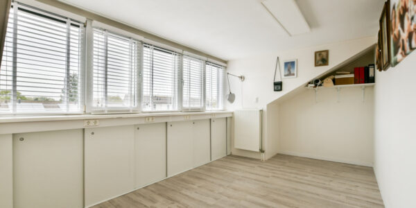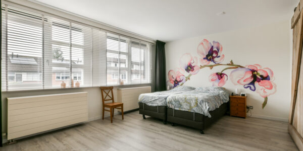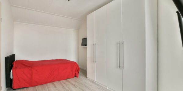 Ook deze verdieping biedt verrassend veel ruimte. Hier bevinden zich nog twee slaapkamers en een technische ruimte. De slaapkamer aan de achterzijde heeft een breed dakkapel waardoor veel licht binnenvalt, terwijl de slaapkamer aan de voorzijde eveneens beschikt over een gezellig Frans balkon. In de technische ruimte vindt u de warmtepomp, aansluitingen voor wasmachine en droger, mechanische ventilatie, een Veluxraam en de omvormer van de zonnepanelen.