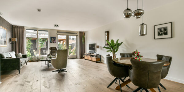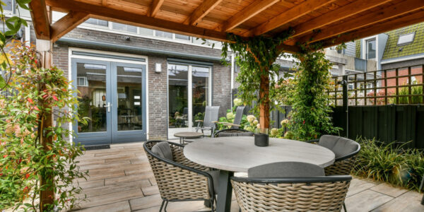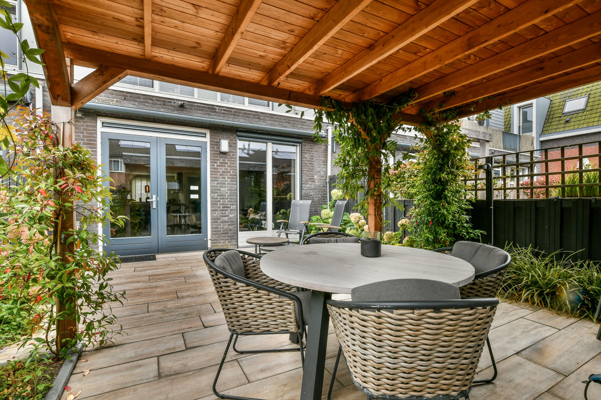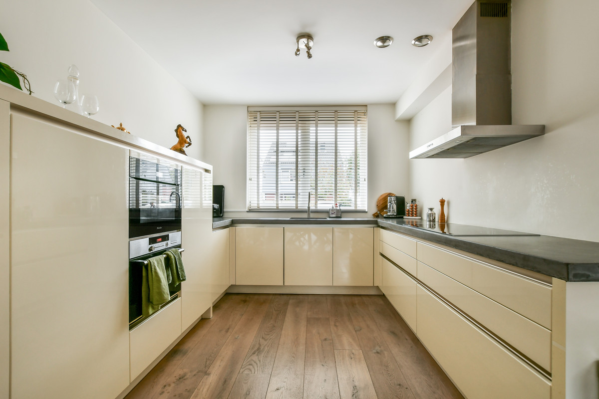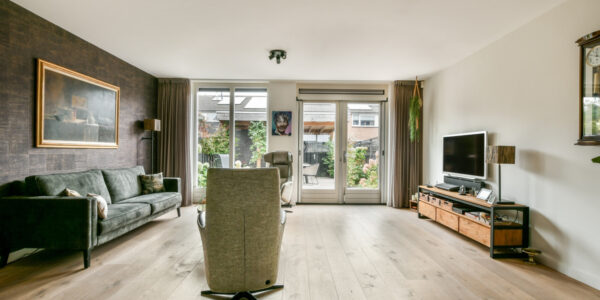 De royale, lichte woonkamer ademt warmte en sfeer dankzij de prachtige eikenhouten vloer met vloerverwarming. De grote raampartijen en openslaande deuren naar de achtertuin zorgen voor een heerlijke lichtinval en een natuurlijke verbinding met buiten. In de praktische trapkast is extra bergruimte aanwezig. De moderne U-vormige keuken is een echte eyecatcher en volledig uitgerust met hoogwaardige inbouwapparatuur: een betonnen werkblad, inductiekookplaat, afzuigkap, Quooker, vaatwasser, koelkast, vriezer, oven en combimagnetron. De zonnige achtertuin op het westen is een fijne plek om te genieten van de middag- en avondzon. Hier vindt u een stenen berging, een overkapping met sedumdak, een buitenkraan en een handige achterom.